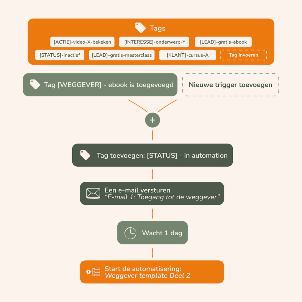 Daarnaast kun je tags gebruiken om de status van een contact bij te houden (bijvoorbeeld lead, prospect of klant). Tags kunnen automatisch toegevoegd en verwijderd worden via automatiseringen.