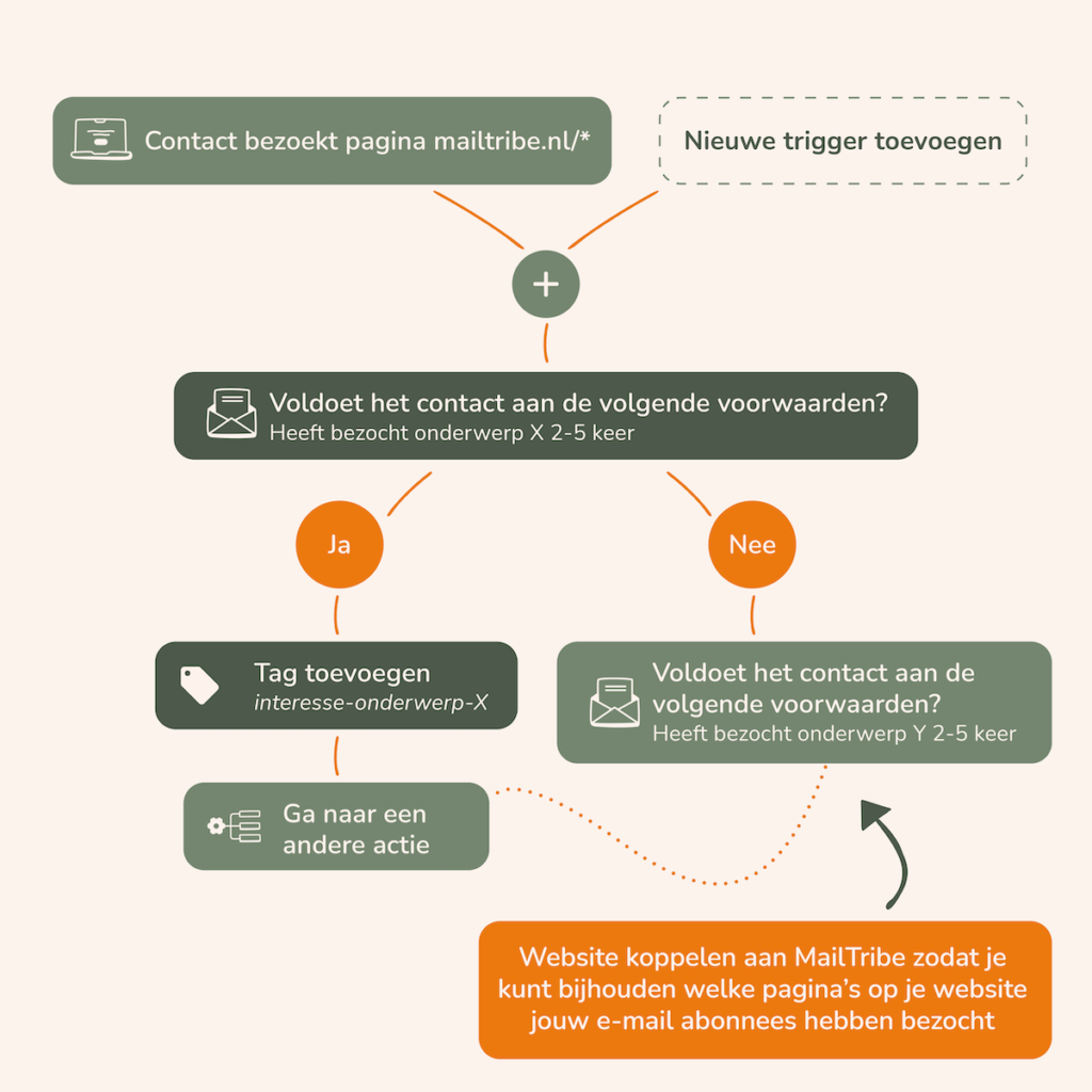 Deze gegevens kun je vervolgens gebruiken in automatiseringen zodat je gerichte e-mails kunt versturen. Verder kun je de hele website geschiedenis van een contact bekijken, zodat je precies weet waar jouw contact in geĂŻnteresseerd is.
